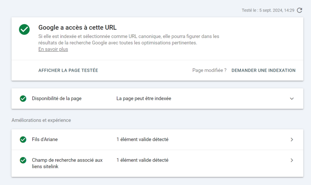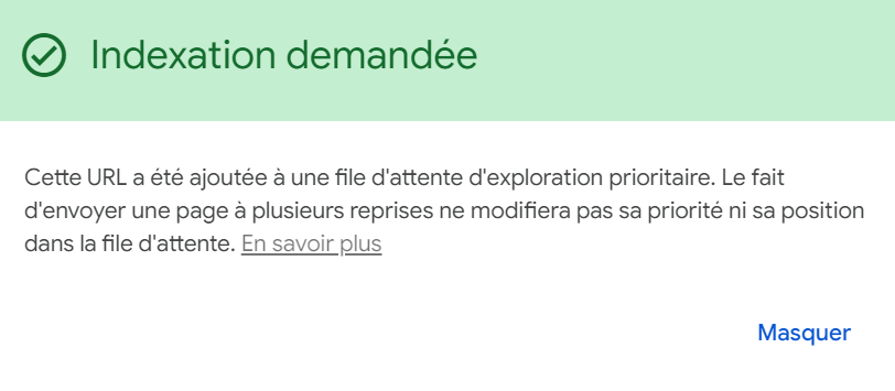 11. Demander une indexation une fois que tout est au vert, cliquer sur demander une indexation